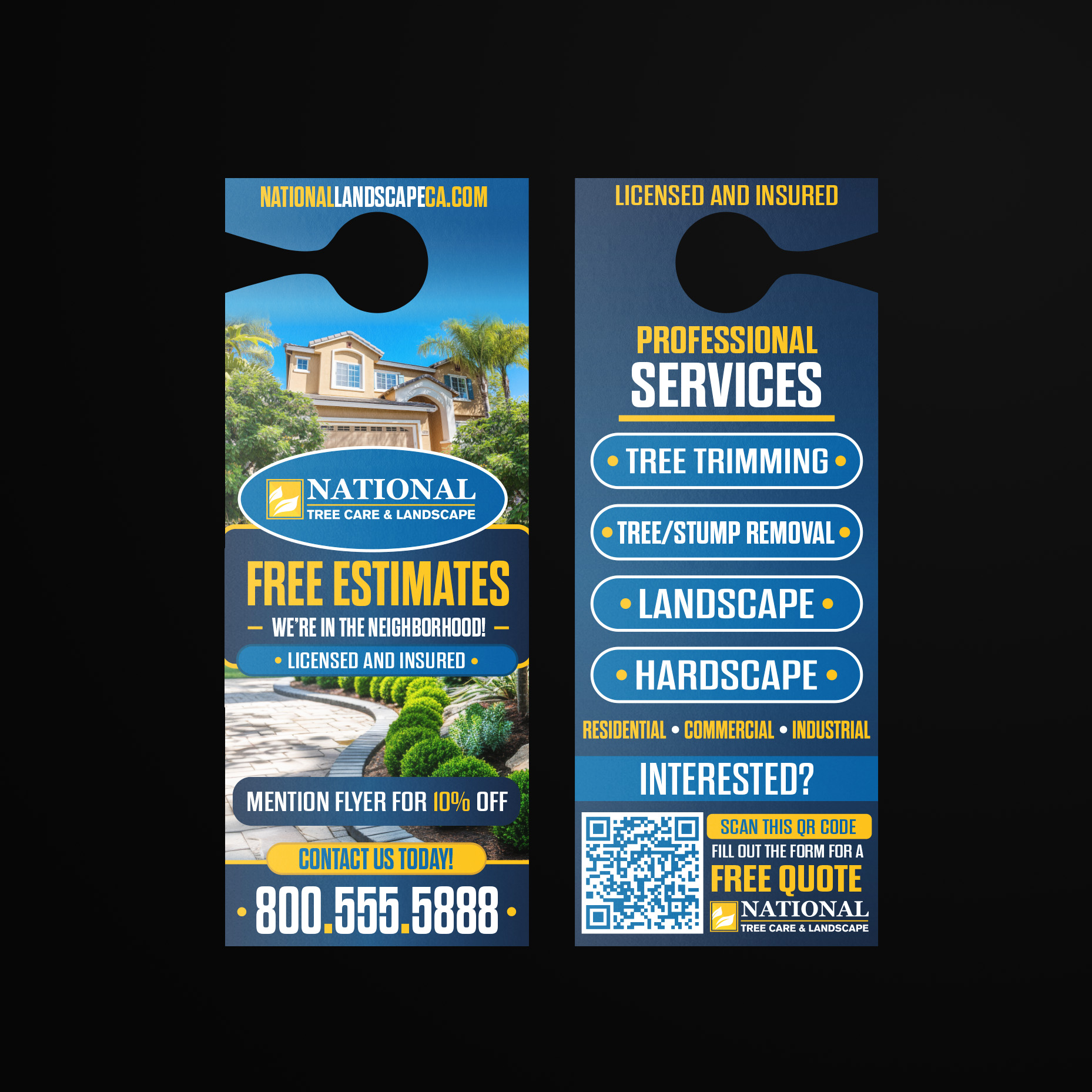 While our Home Service Door Hanger layout can be useful in any home service industry, we find that lawn care, landscaping, power washing, and window cleaning companies often find the most success. However, those are also the most popular industries for door hangers, which may skew the results!